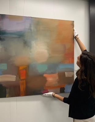 The fabulous Artysco.ch installing one of my paintings with a client.